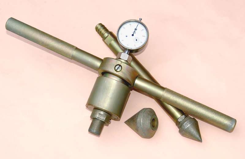 Рукоятку с пружинным динамометром закрепляют на переходной штанге, конус с отключающим устройством закрепляют в нижней части первой штанги и из штанг набирают колонну необходимой длины. На рукоятке с пружинным динамометром устанавливают индикатор ИЧ-10.