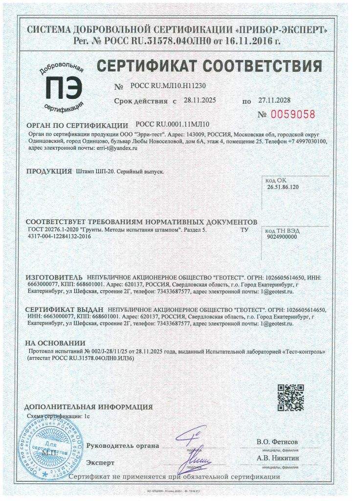 | Программа Shwpw для обработки результатов испытаний | 1 шт |