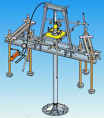 После установки анкеров, вокруг ствола штампа монтируют силовую раму и реперную систему, а на ствол штампа устанавливают